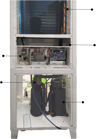 1、內(nèi)外機(jī)連接使用PVC水管,內(nèi)機(jī)進(jìn)水口連接外機(jī)出水口,內(nèi)機(jī)出水口接外機(jī)進(jìn)水口